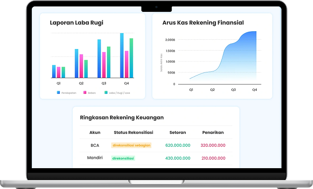 Hemat waktu pembukuan sampai 85%, akuntansi jadi gampang. Laporan jadi tepat waktu, otomatis, akuntan bisa fokus ke analisis.
