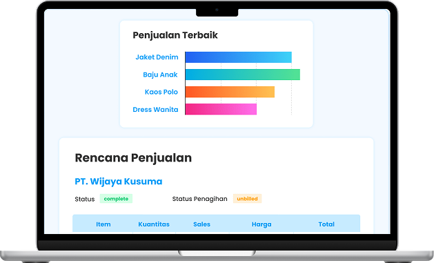 Laporan akuntansi, penjualan, biaya, stok, sampai HR di satu software. Semua analisis tersedia kapan saja, ambil keputusan bisnis jadi cepat.